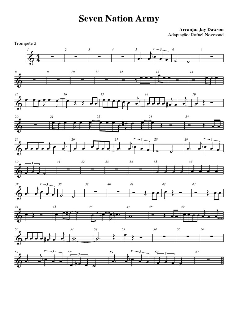 7 Nation Army Sheet Music Trumpet - This is seven nation army arranged for bb.
