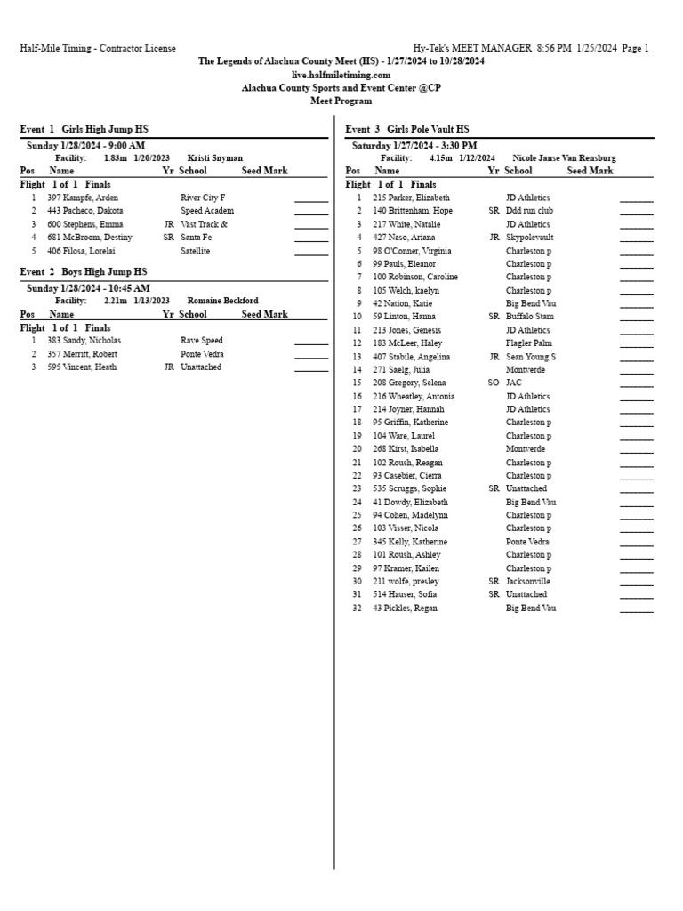 Legends of Alachua County Meet Program PDF Track And Field Sport