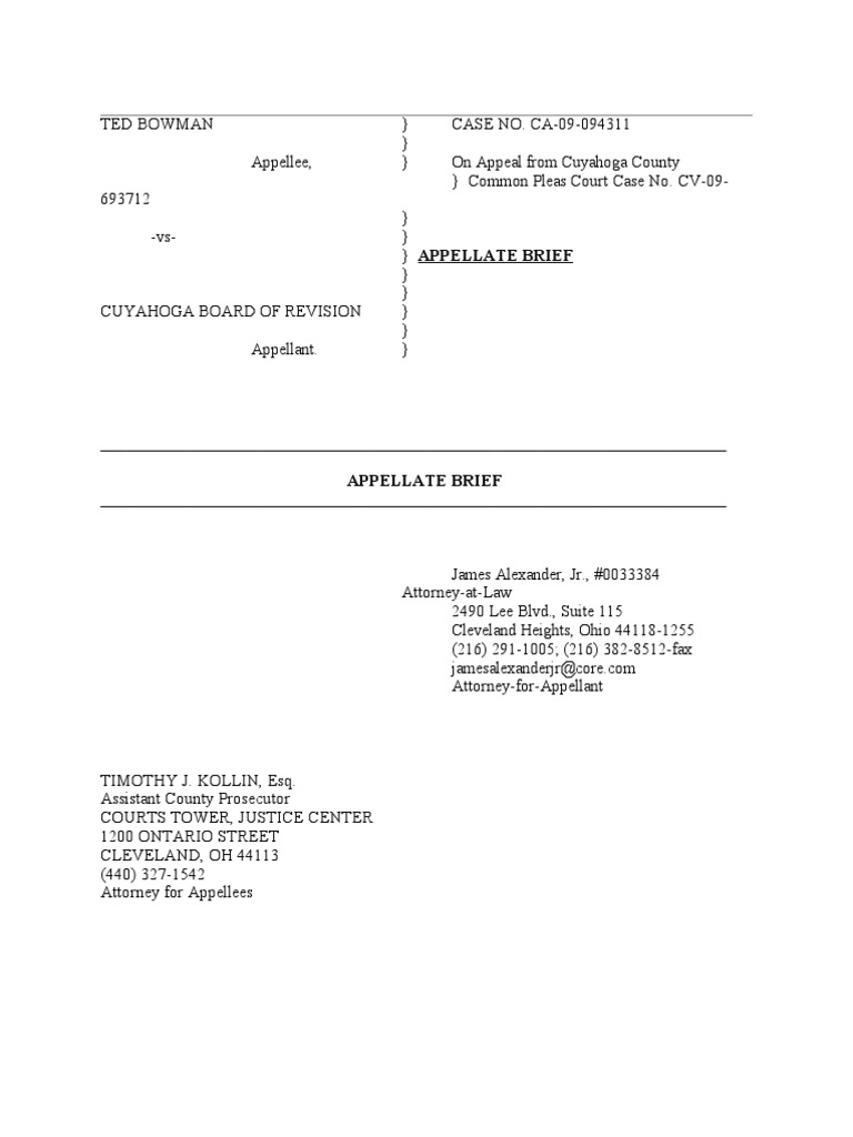 Appellate Brief Brief (Law) Real Estate Appraisal