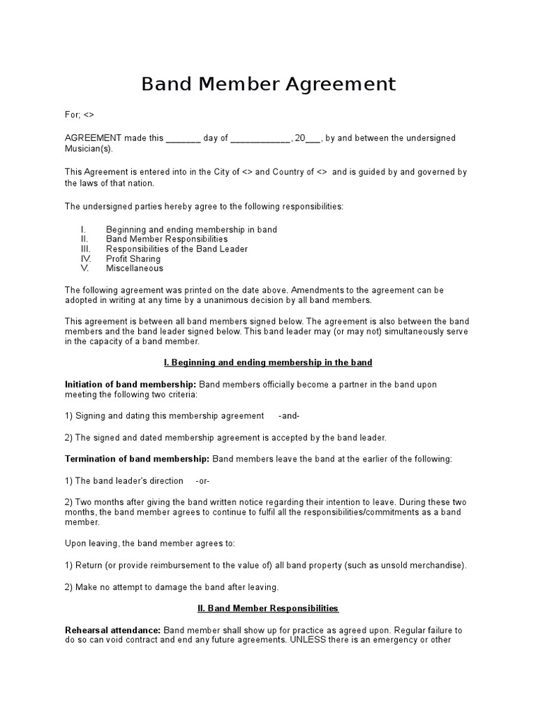 Band Agreement Contract Template - Here we have a collection of band contract. Download template.net’s free band contract. To be able to create a reliable and useful. Writing a band agreement involves detailing the.