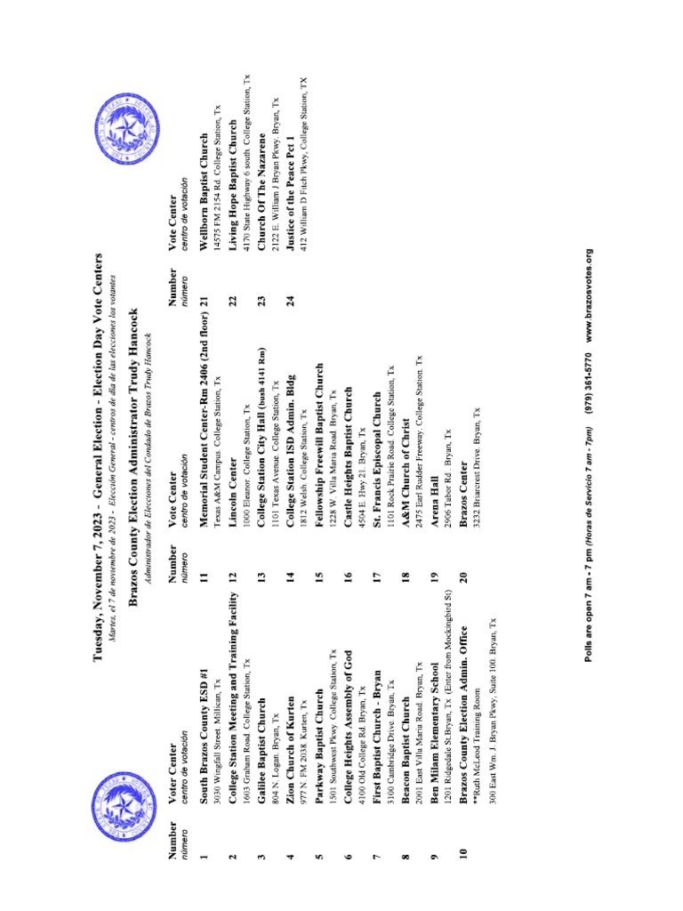 Brazos County General Election Schedule PDF