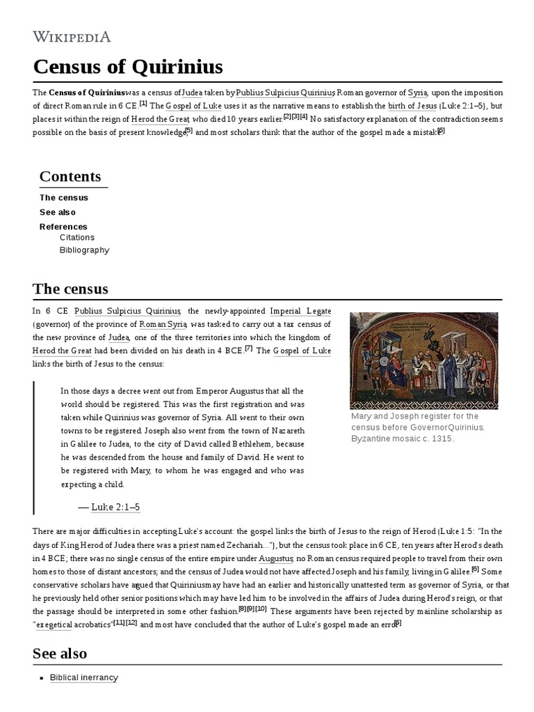 The problem comes from a modern view of an ancient taxing system. First of all, let's look at a few early census accounts taken from history and see how they. Publius sulpicius quirinius (“quirinius”) was a roman general and governor who governed syria twice as caesar's imperial legate (“legatus augusti pro praetore”), from 12 to 4 bc, and then. The.