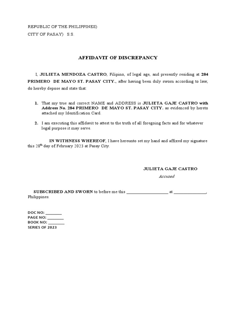 Pdf Affidavit Of Change Of Name Philippines, Text, Document HD PNG