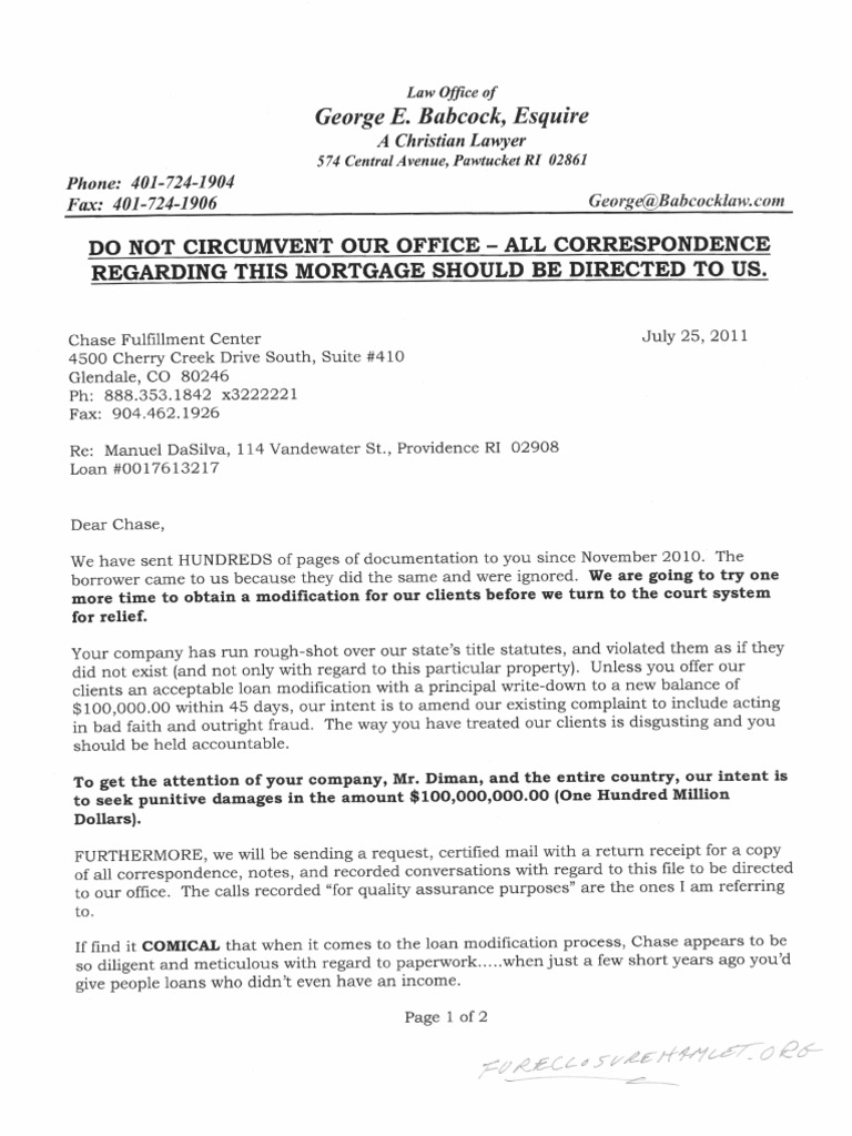 Modify or Face Lawsuit for Foreclosure Fraud Chase Bank Foreclosure
