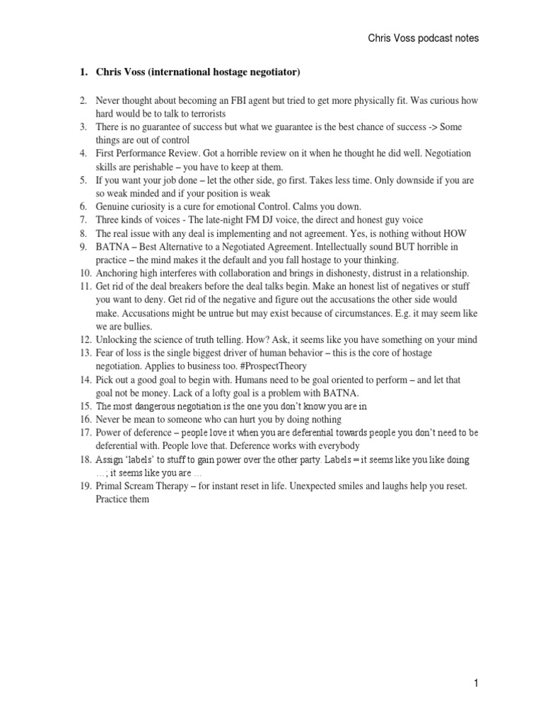 I’ve Found Chris’ 1 Sheet Helpful To Get In The Right Frame Of Mind Before I Go Into A Negotiation.