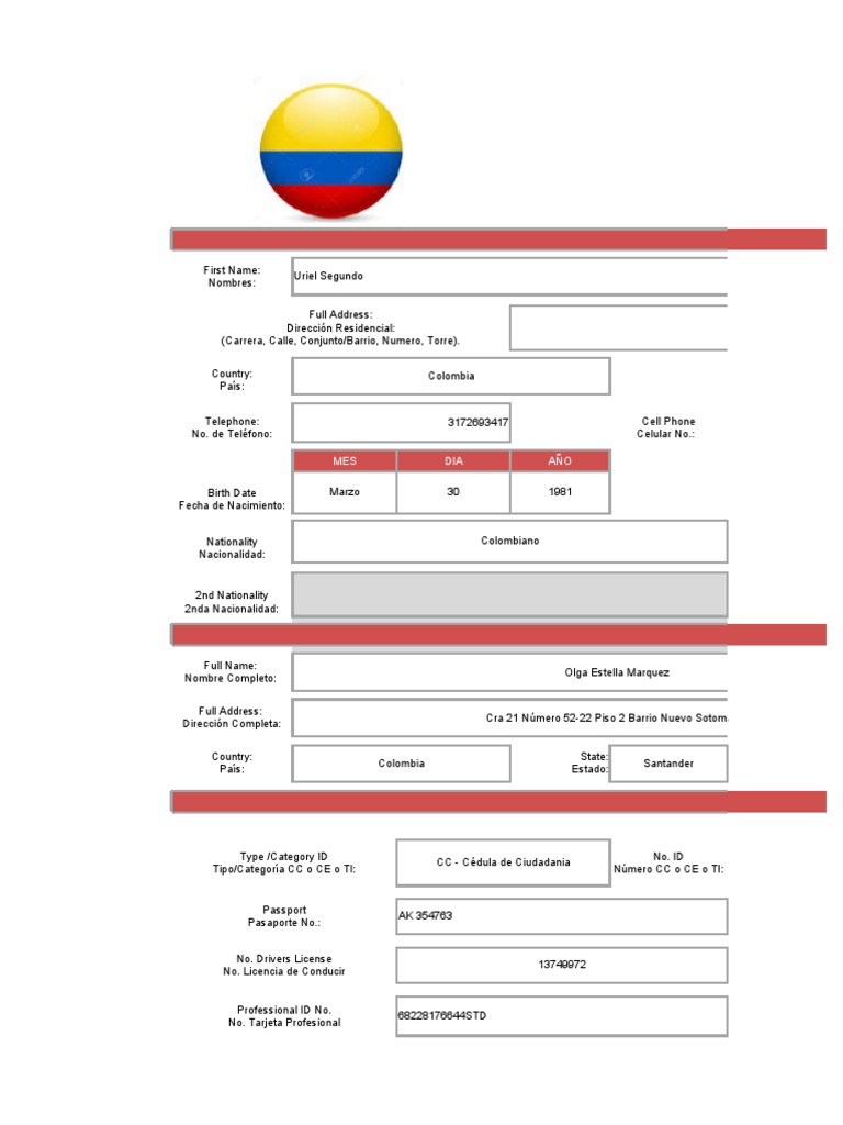 Candidate Registration Form Colombia PDF