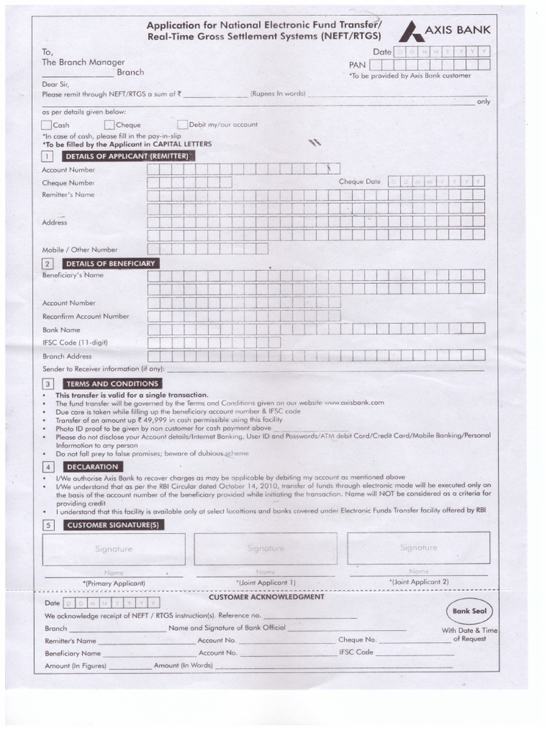 Latest Axis Bank RTGS And NEFT Form Pdf Download TechZooZ Birthday