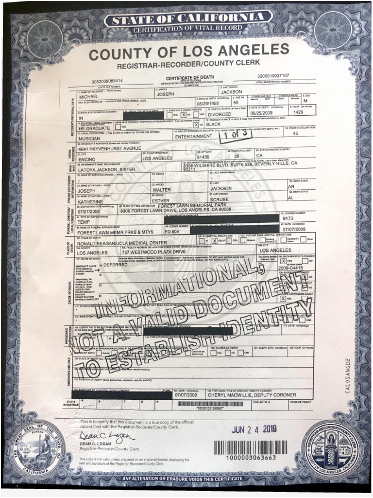 Michael jackson death certificate hires stock photography and images