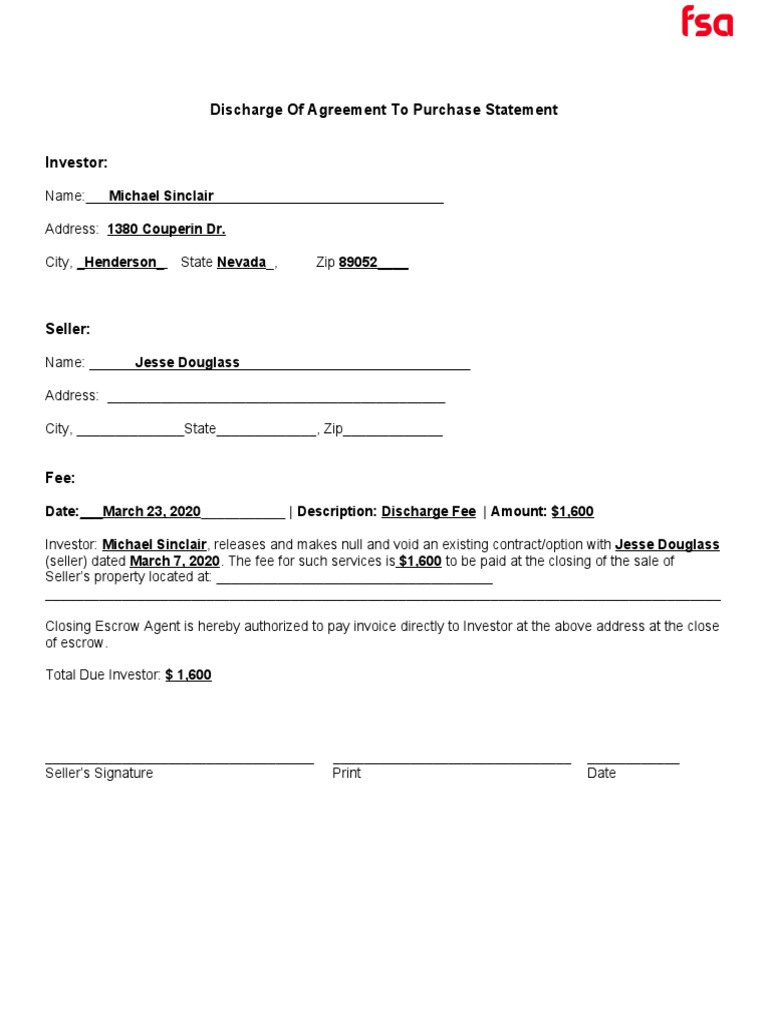 Discharge of Agreement To Purchase Statement PDF