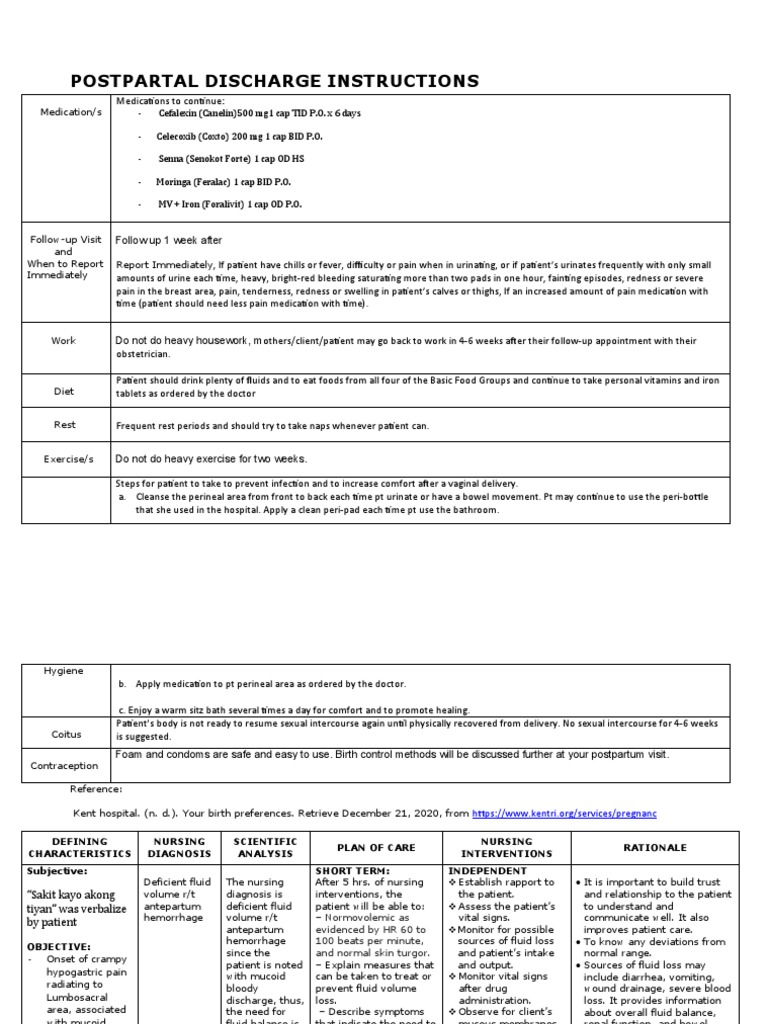 Postpartum Discharge Instructions PDF Dehydration Birth Control