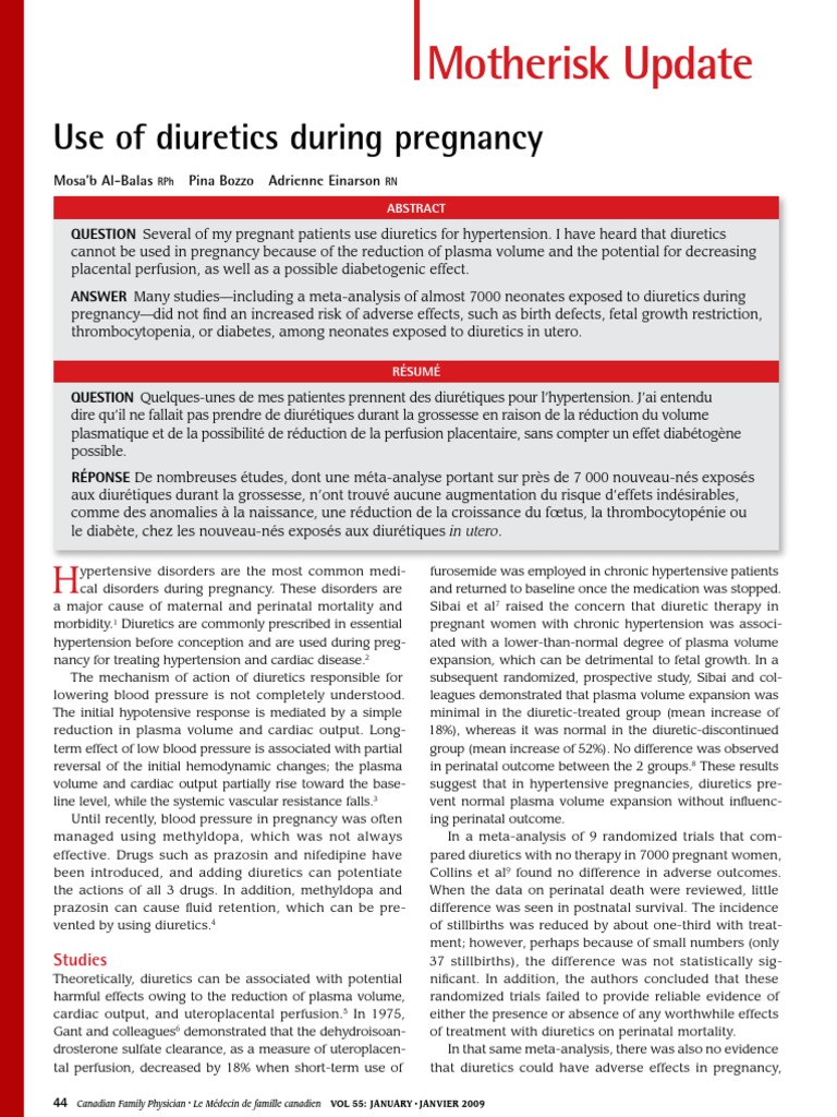 Motherisk Update Use of Diuretics During Pregnancy PDF