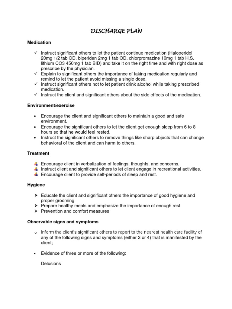 Discharge Plan PDF Symptom Pharmaceutical Drug