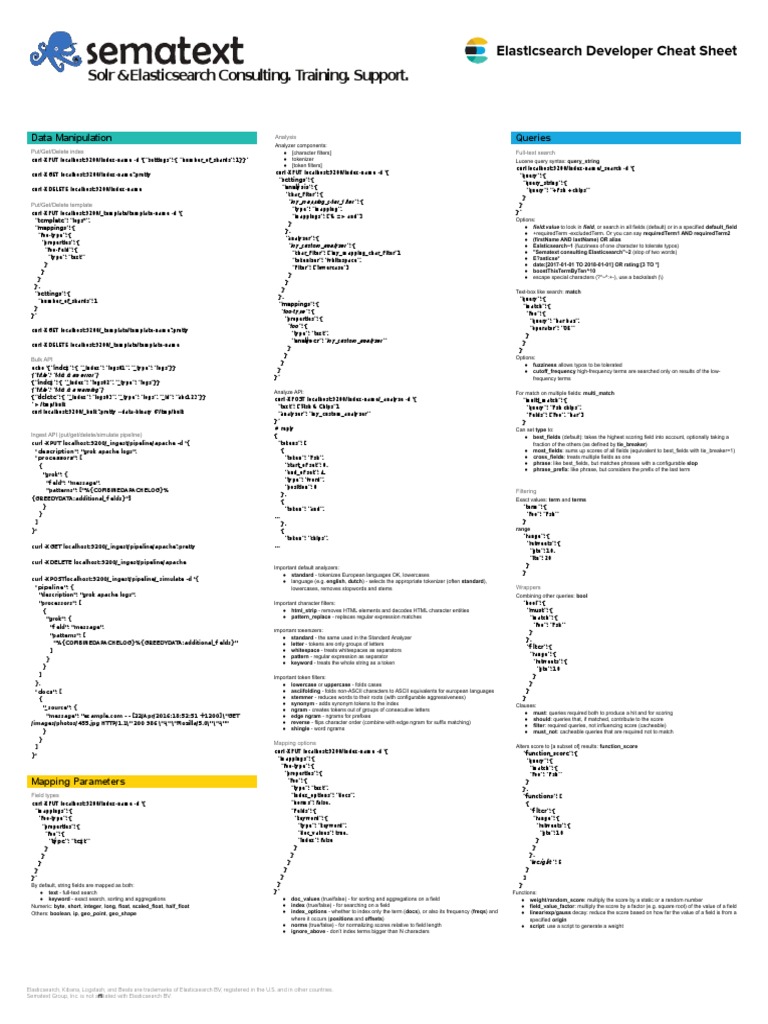 Elasticsearch Developer Cheat Sheet Sematext