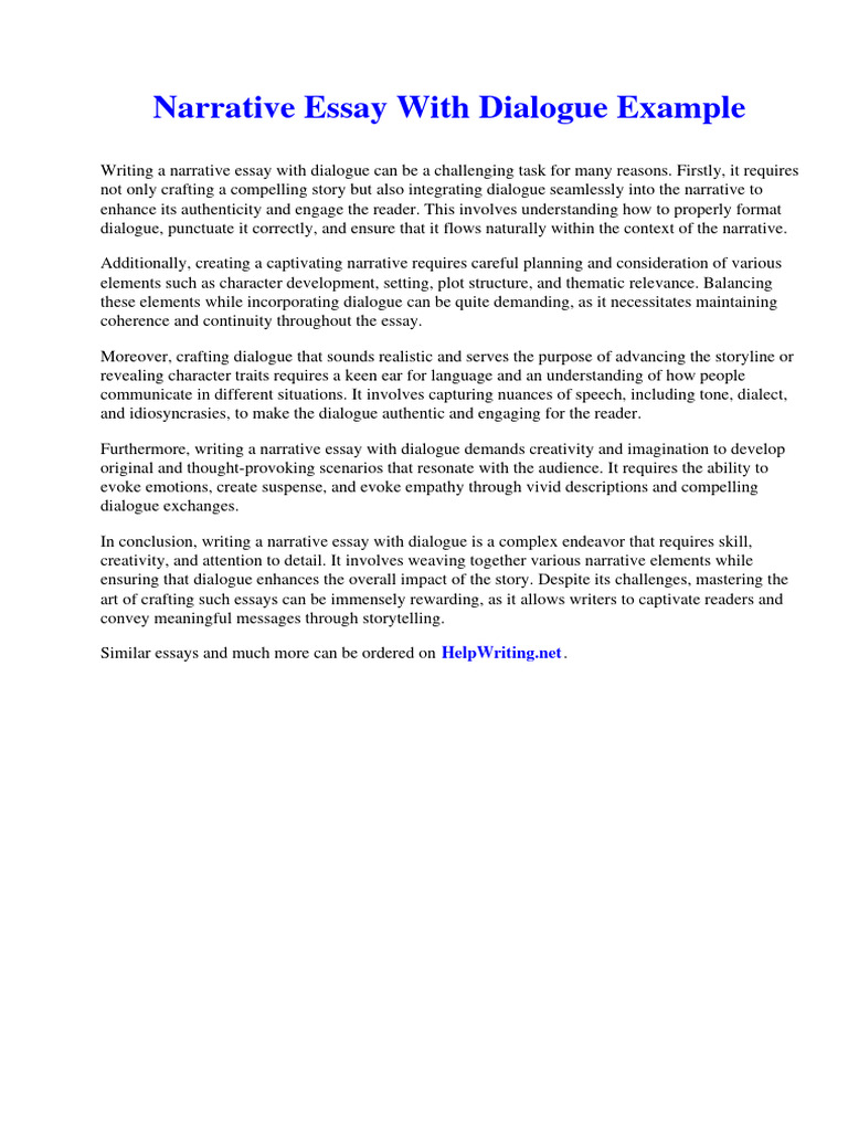 Narrative Essay With Dialogue Example PDF Narrative Essays