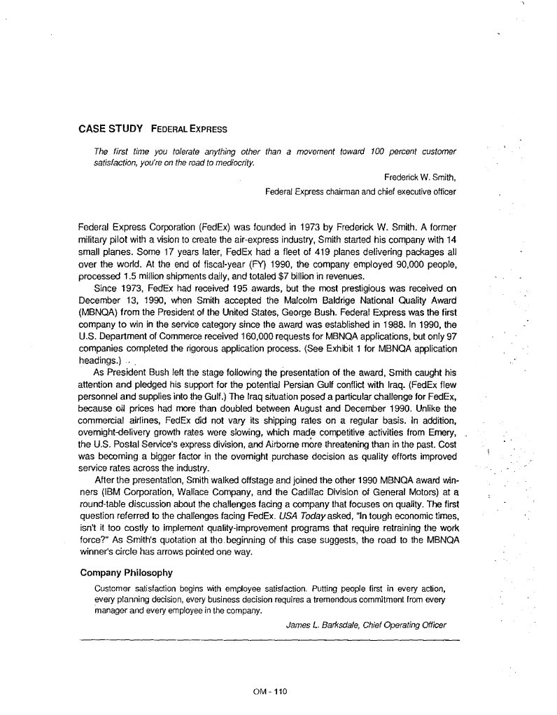 Achieving Excellence Through Quality How Federal Express Won the