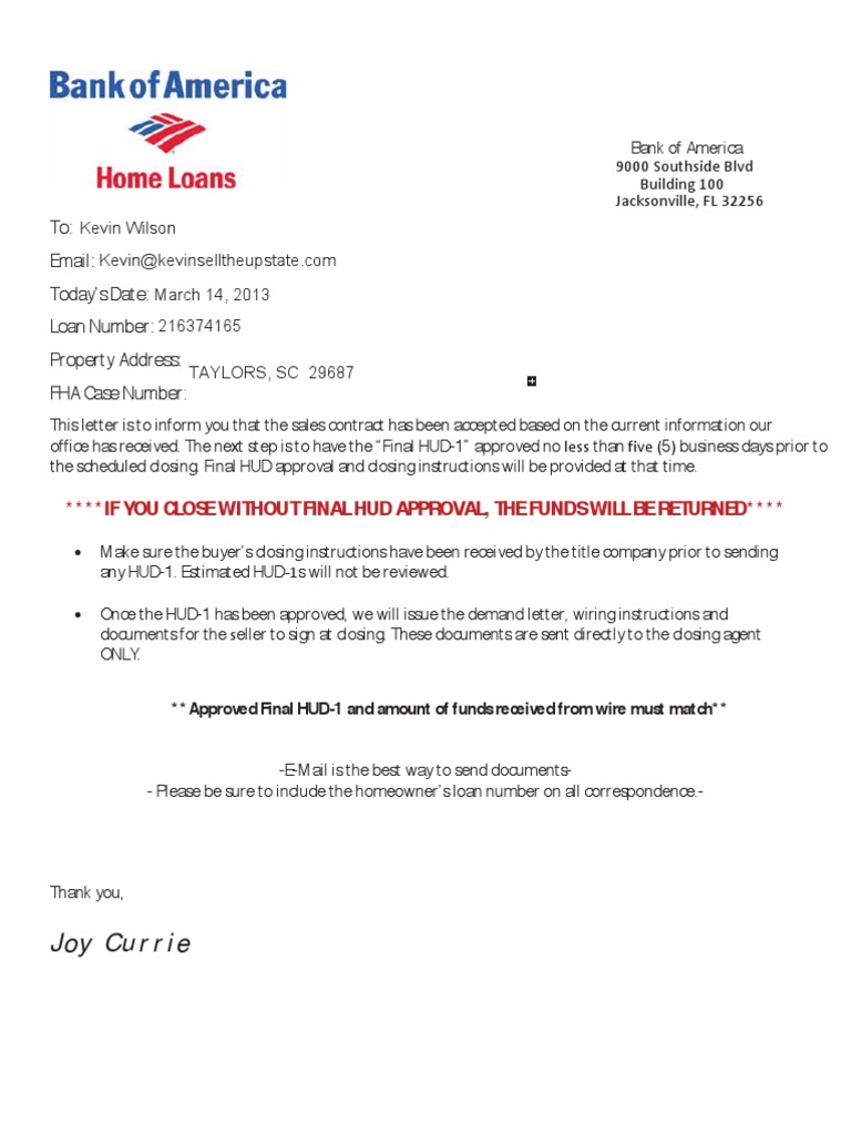 FHA Short Sale Approval and Closing Instructions for 25 Berry Pine