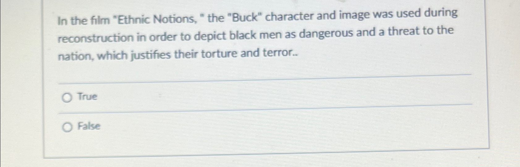 Solved In the film "Ethnic Notions, " the "Buck" character