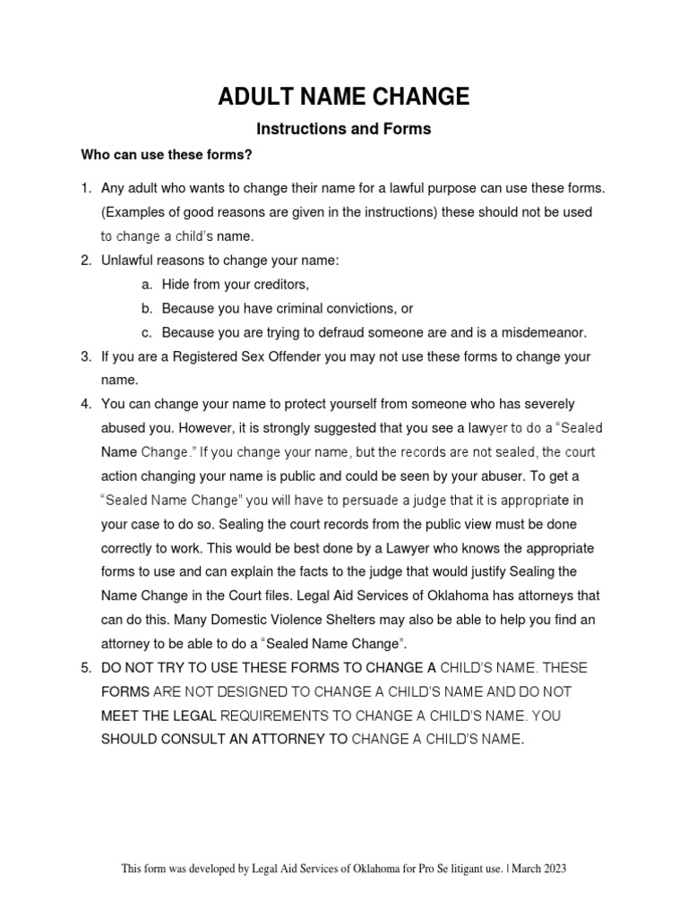 Adult Name Change Forms PDF Pro Se Legal Representation In The