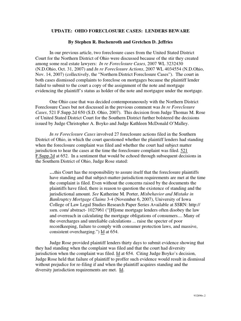 Update Ohio Foreclosure Cases Lenders Beware by Stephen R. Buchenroth