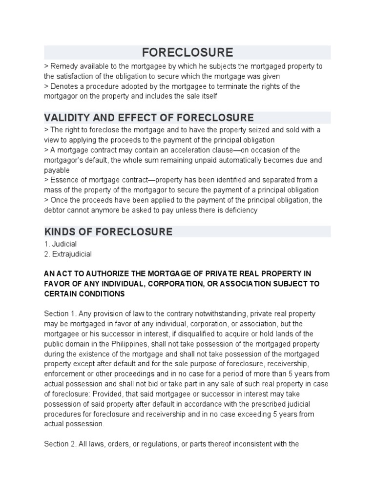 MORTGAGE FORECLOSURE PROCEDURES PDF Foreclosure Mortgage Law