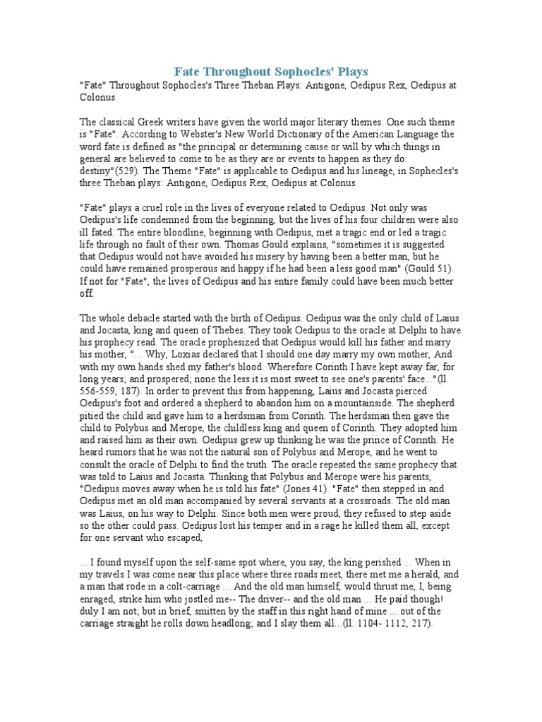 In oedipus rex, sophocles uses foreshadowing to build tension and hint at oedipus's tragic fate. In sophocles' play oedipus rex, he uses. With these words, tiresias, a blind prophet in `oedipus the king' set the actions in play that. Throughout the tragedy of oedipus the king, oedipus displays his imperfectly noble being for all to see. While oedipus had saved.