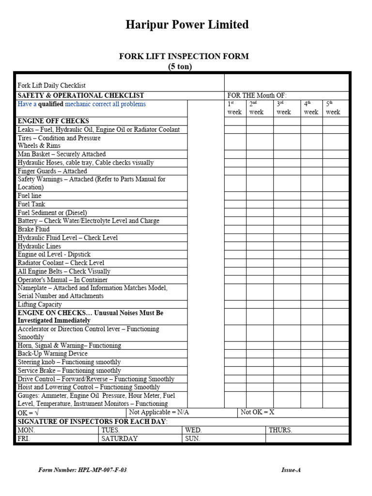 Fork Lift Inspection Form - 👉 osha electric forklift truck inspection checklist:. Having one forklift checklist that is simple to.