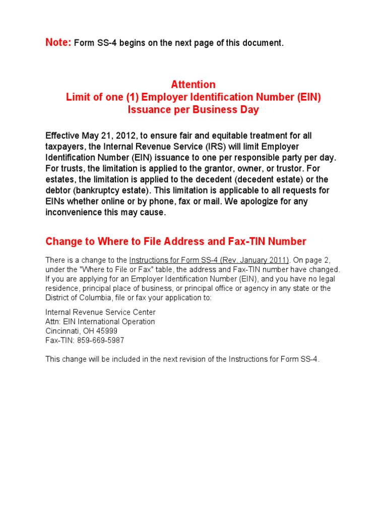 Form Ss 4 Instructions Responsible Party