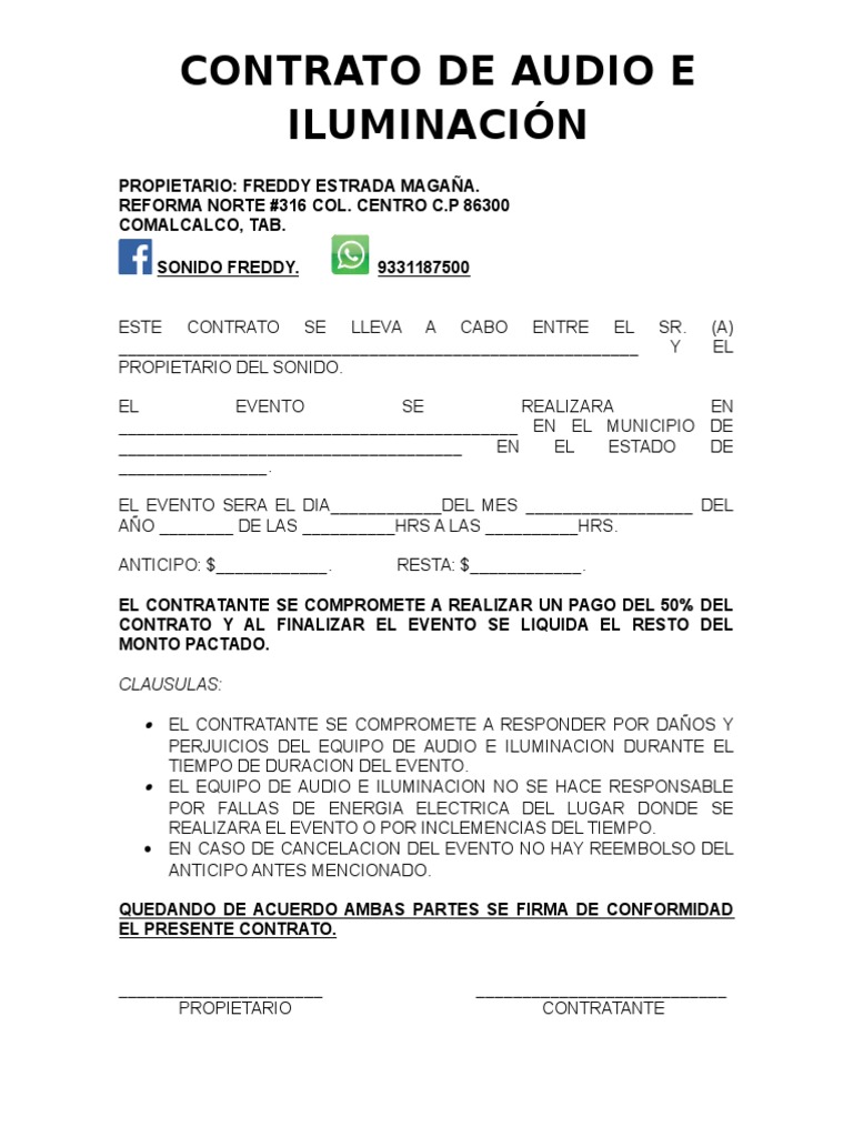 Contrato Luces y Sonido. PDF Negocios (general) Business