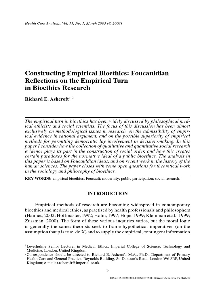 Foucauldian Turn Bioethics Survey Methodology
