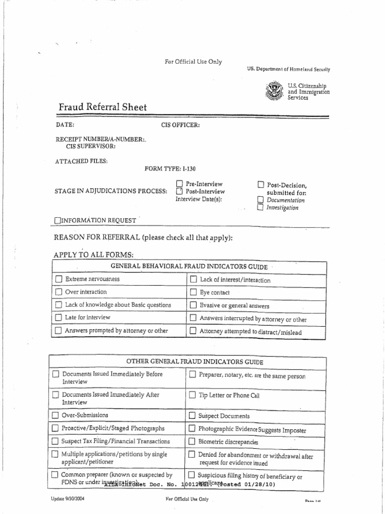 USCIS Fraud Referral Sheet PDF