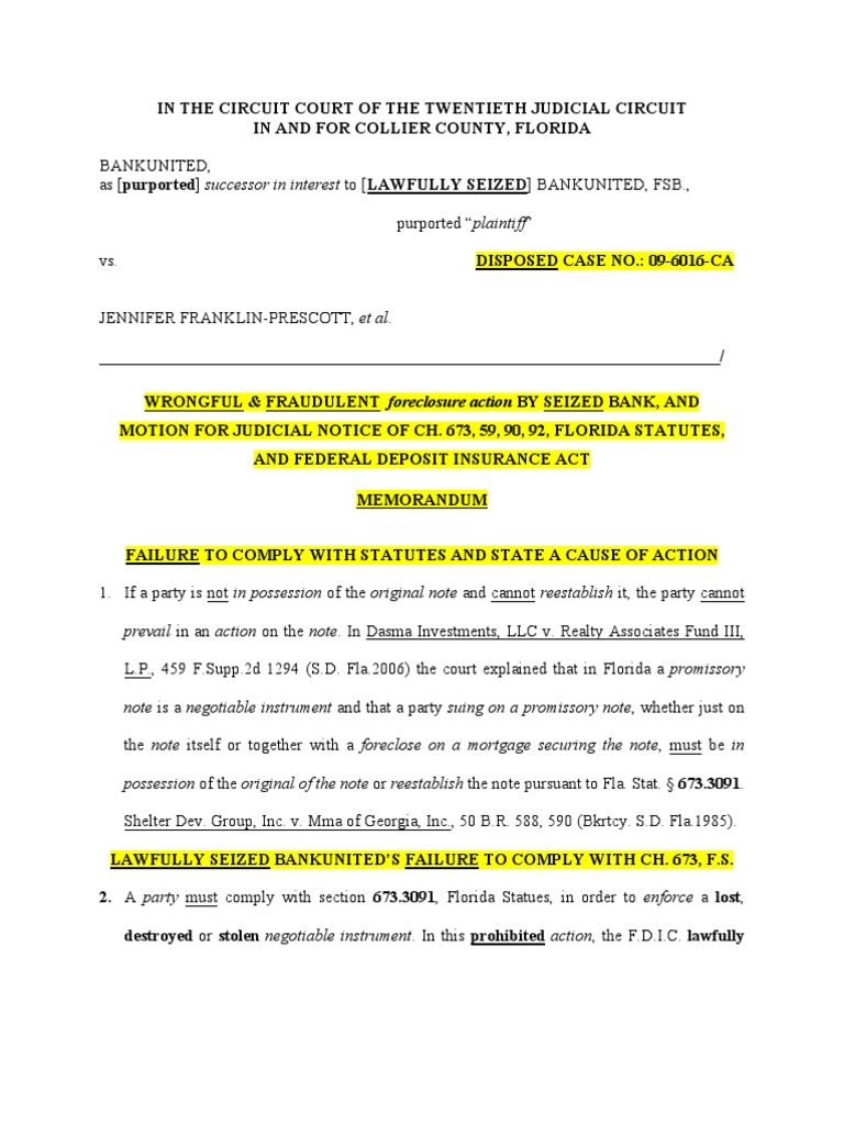 FRAUDULENT Foreclosure Action BY F.D.I.C. SEIZED BANKUNITED, FSB PDF