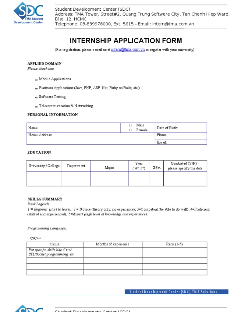Our internship application form template streamlines your hiring process, offering comprehensive, customizable fields to collect. The template should highlight your. Internship application is a process in which a potential intern submits their application form to a company that offers internship programs related.