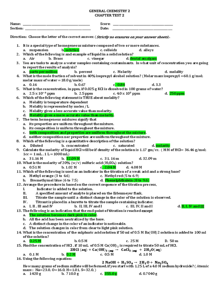 Gen Chem 2 Chapter Test 2 PDF