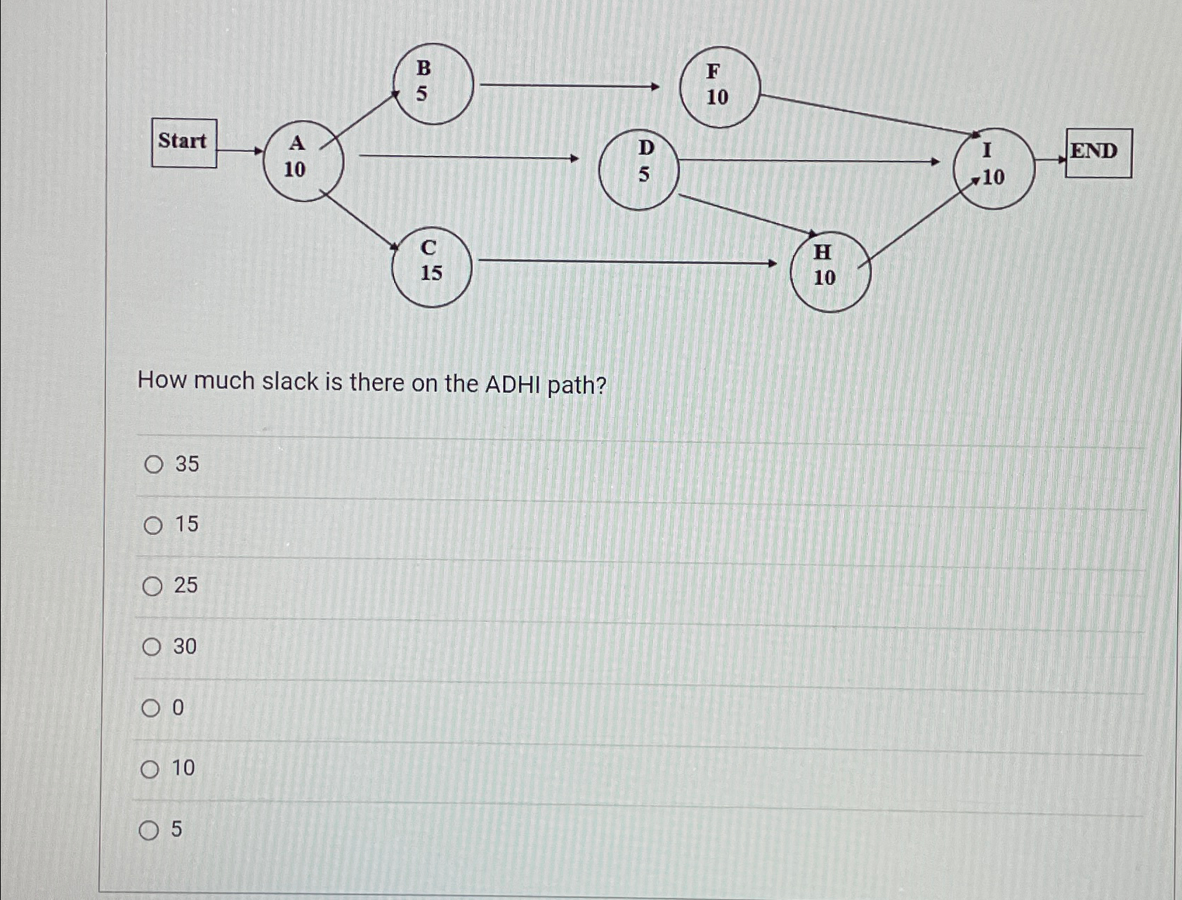 Solved Start 35 O 10 30 0 25 How much slack is there on the
