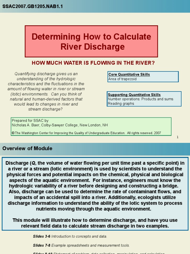 How To Calculate River Discharge - The following steps outline how to calculate the river discharge: Calculating river discharge is essential for understanding water resources and managing flooding risks. Learn how streamflow (or discharge) is defined, measured, and used for environmental management.