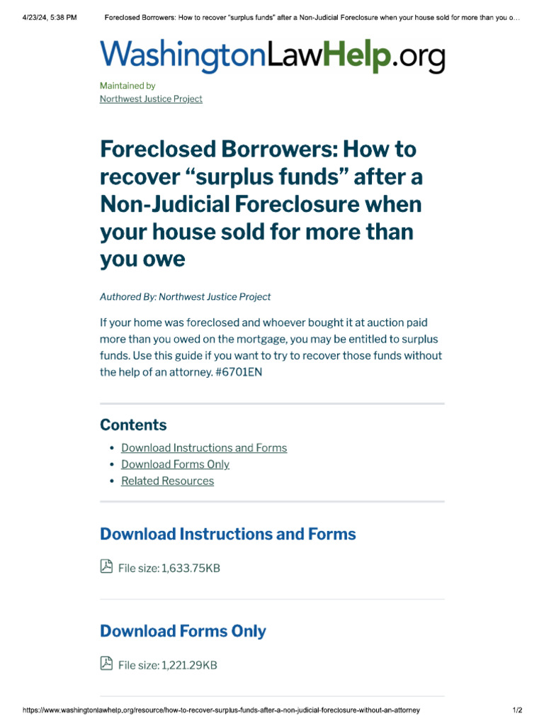 Learn what surplus funds are, who can claim them, and how to find out if your property is sold with surplus. Below are tips on accessing your surplus funds and protecting yourself from scammers who want to steal your funds. Explore three options to file a.