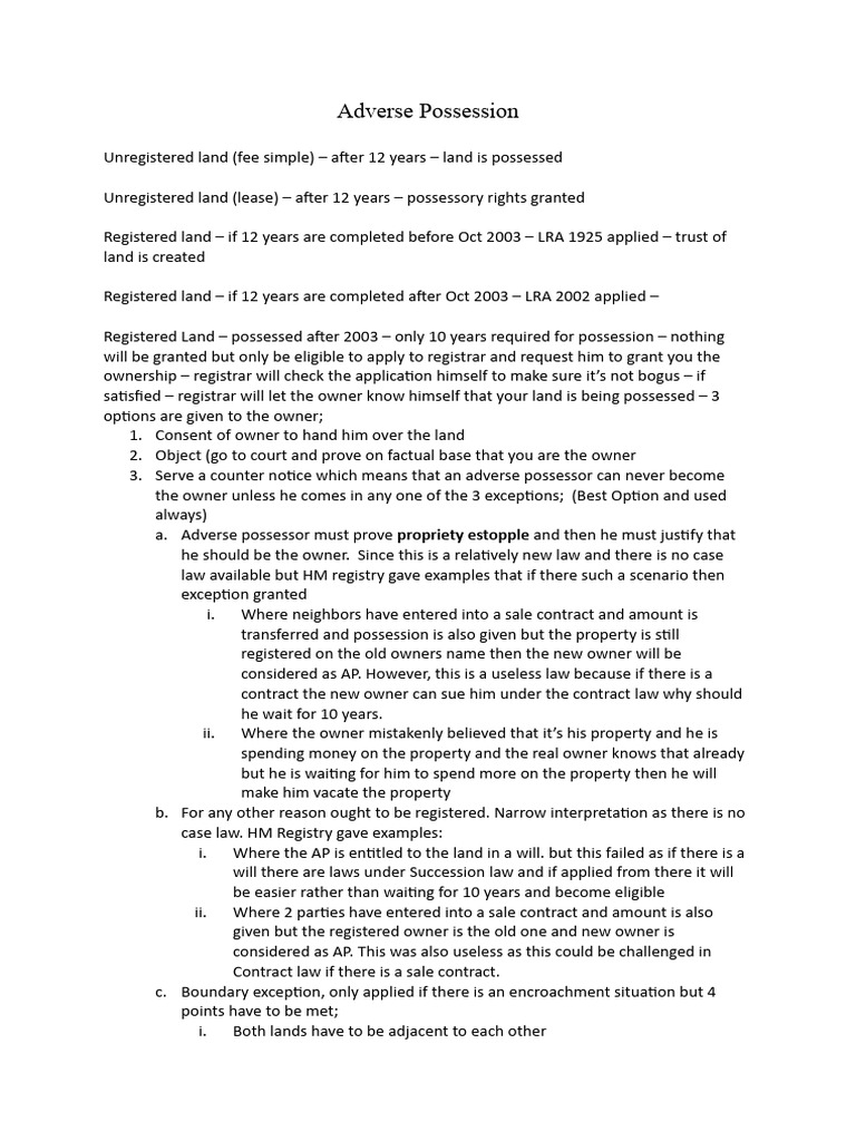 Adverse possession essay 3 This essay must describe how LRA 2002