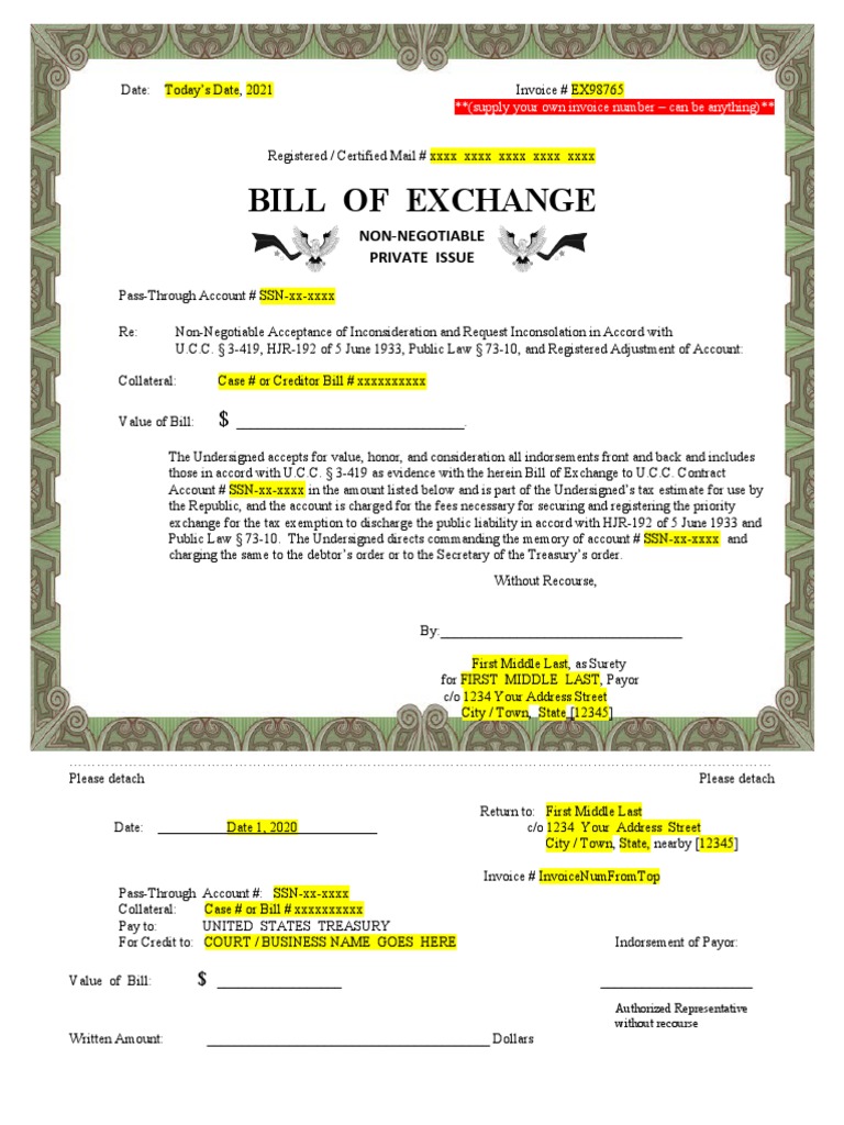 An international bill of exchange is a bill of exchange which specifies two of the following places and indicates that any two 80 specified. This document is a template for the uncitral international bill of exchange. $[amount] held on deposit and blocked for this international bill of exchange in account [acct number] within fides. It outlines the necessary fields and.