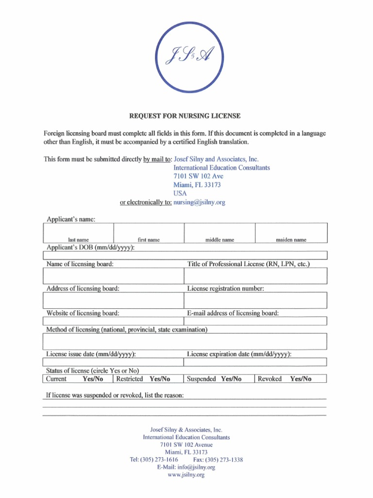 J Silny Application Form - You will need to submit a new application form, the evaluation fee of $150 and an official original academic transcript listing courses taken,.