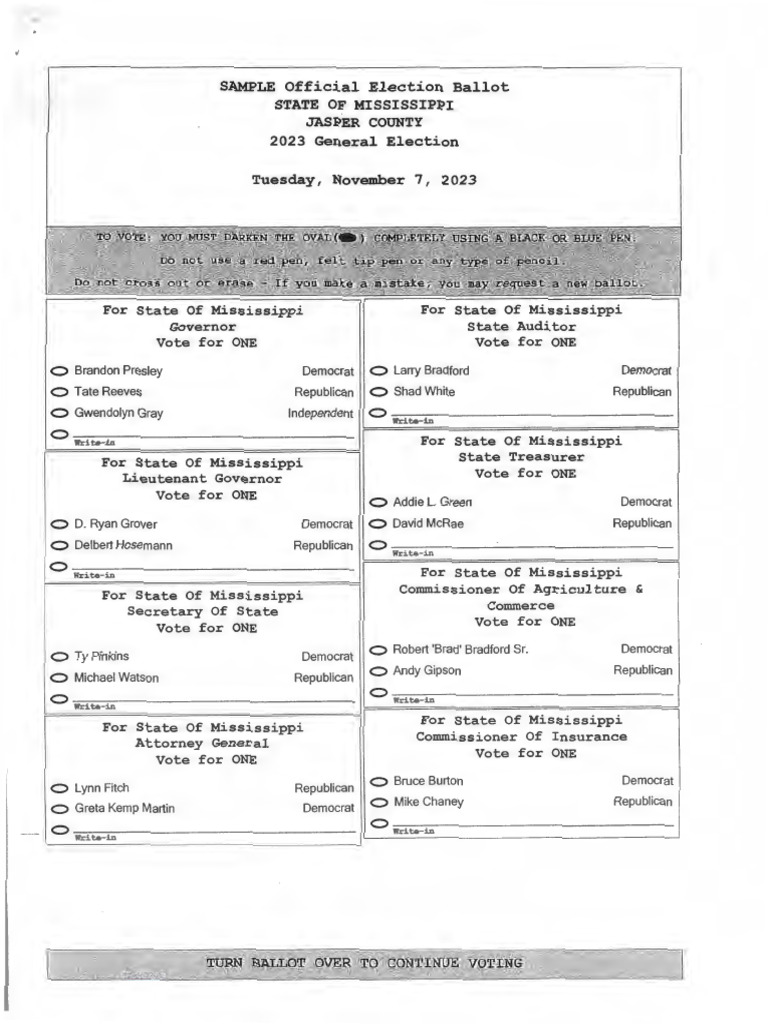 Jasper County Sample Ballot PDF