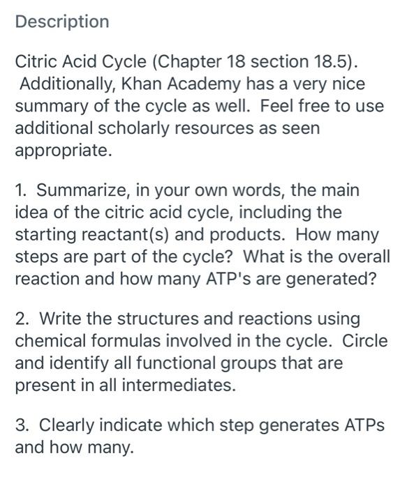 Solved Description Citric Acid Cycle (Chapter 18 section