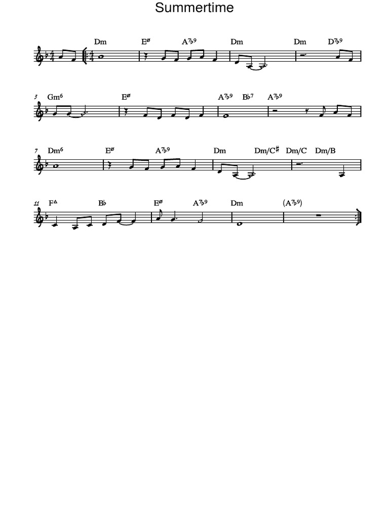 Gershwin "Summertime" Sheet Music Notes Download Printable PDF