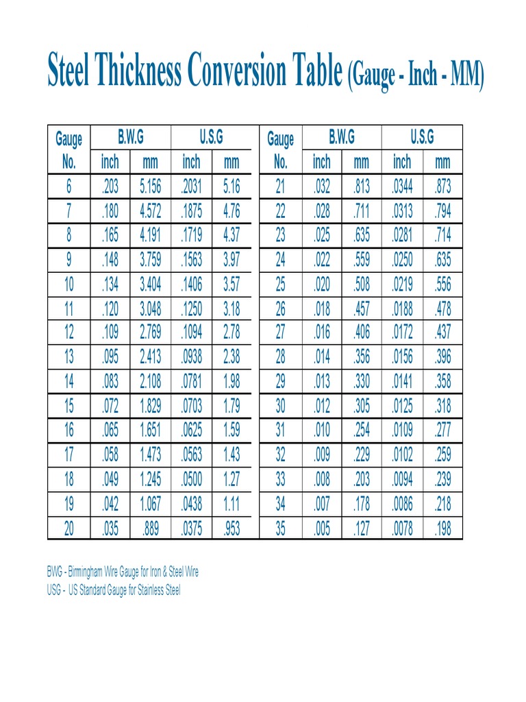 Mm To Gauge Conversion For Sheet Metal