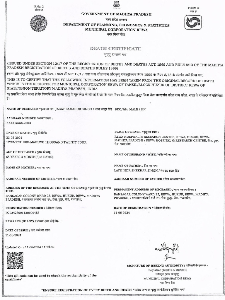 Nigel Rasheed Bahadur Death Certificate Chicago