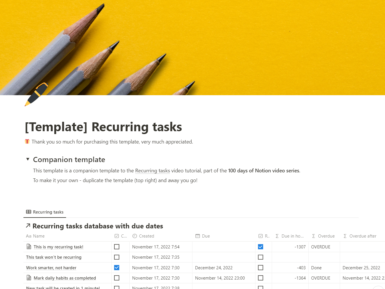 Notion Recurring Tasks companion template