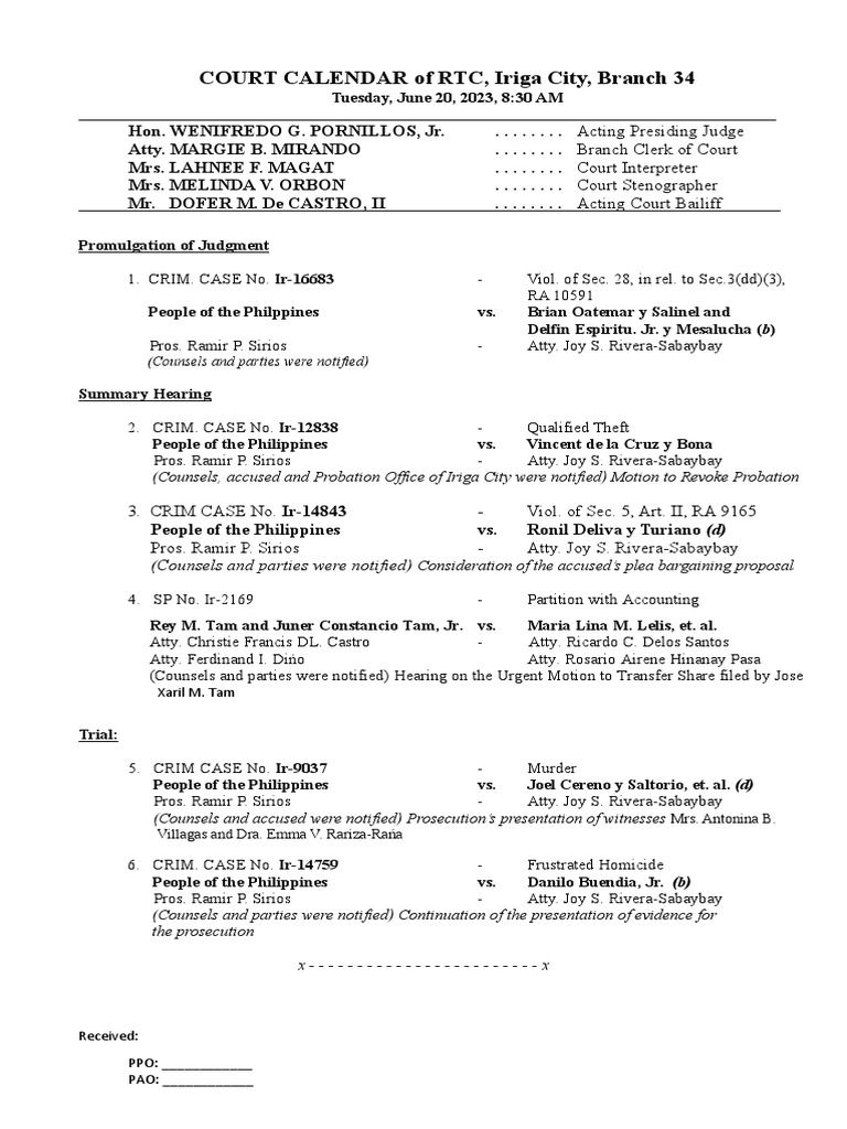 June 20 Sample Court Calendar PDF