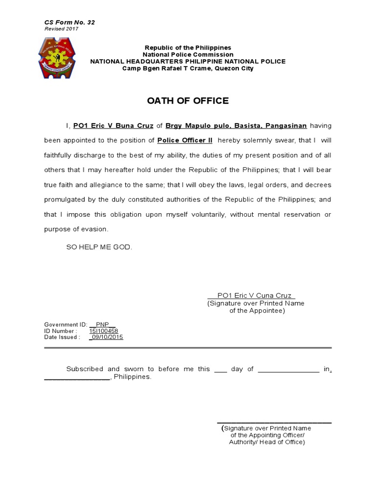 Oath of Office (Officers' Copy) Oath Of Office Public Sphere