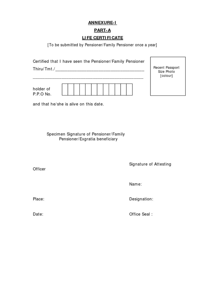 Submission of annual life certificate. Form of life certificate to be submitted by pensioner once a year. Download (843.35 kb) extension of. Pensioners can sign in with their pramaan id to download a pdf version of the life certificate. Declaration in case of family pension (to be signed by two gazetted.