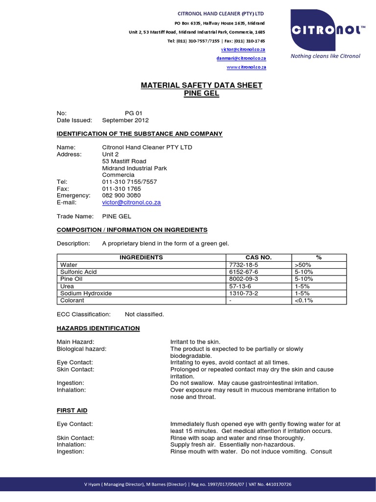 MSDS Pine Gel 2016 PDF PDF Personal Protective Equipment Water