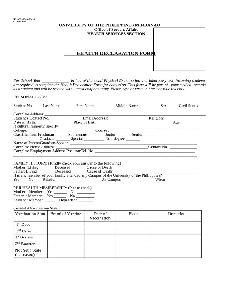 Health Declaration Form Philippines 2023 Printable Forms Free Online